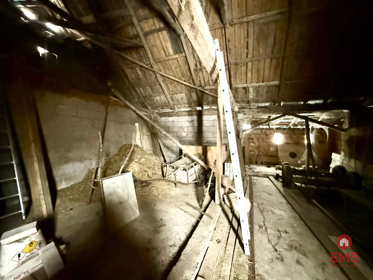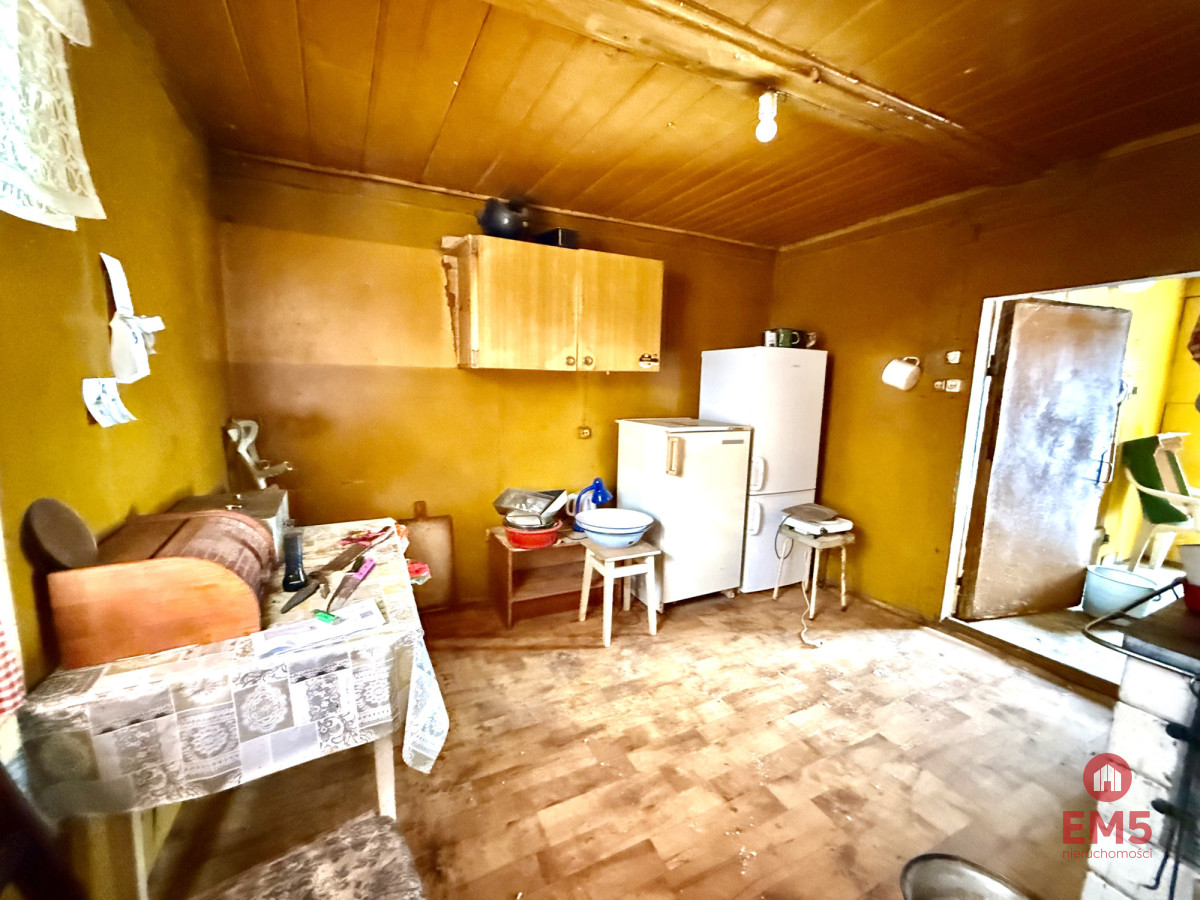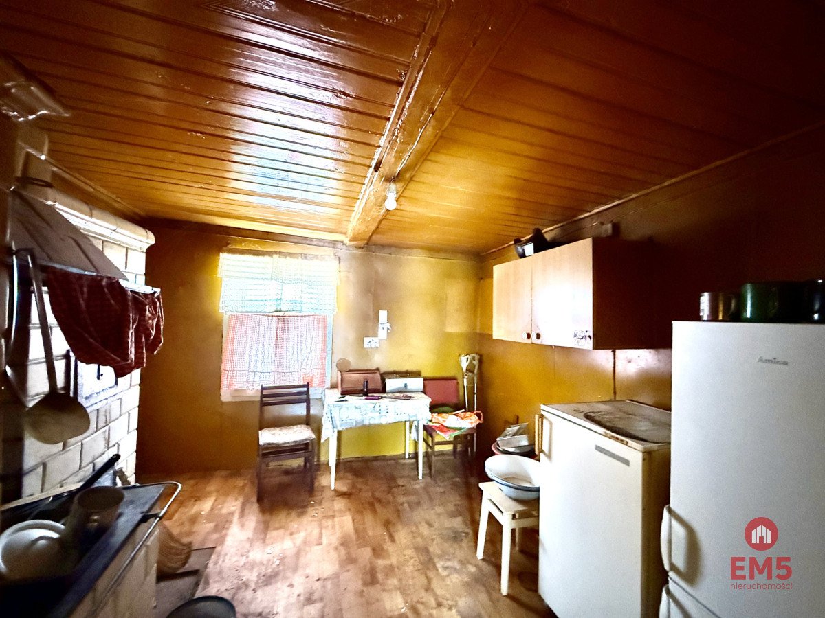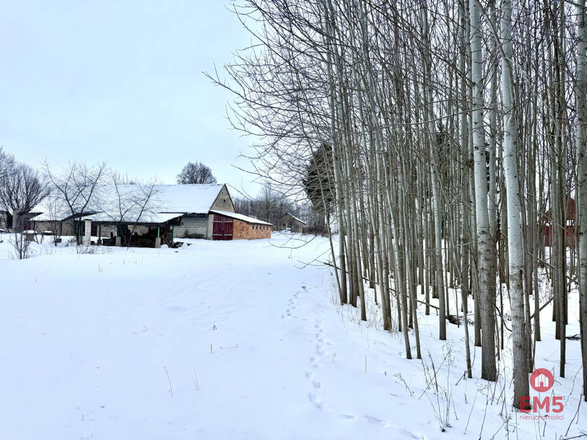 Powierzchnia działki wynosi 9 496 m², a jej wymiary to około 61 metrów szerokości i 155 metrów długości. Na terenie działki znajduje się dom mieszkalny o powierzchni około 100 m², przeznaczony do remontu, w którym znajduje się piec kaflowy, nadający wnętrzu tradycyjny, wiejski charakter. Dodatkowo na siedlisku znajduje się duża stodoła o powierzchni ponad 250 m², tradycyjna wędzarnia oraz studnia, podkreślające autentyczny charakter nieruchomości.