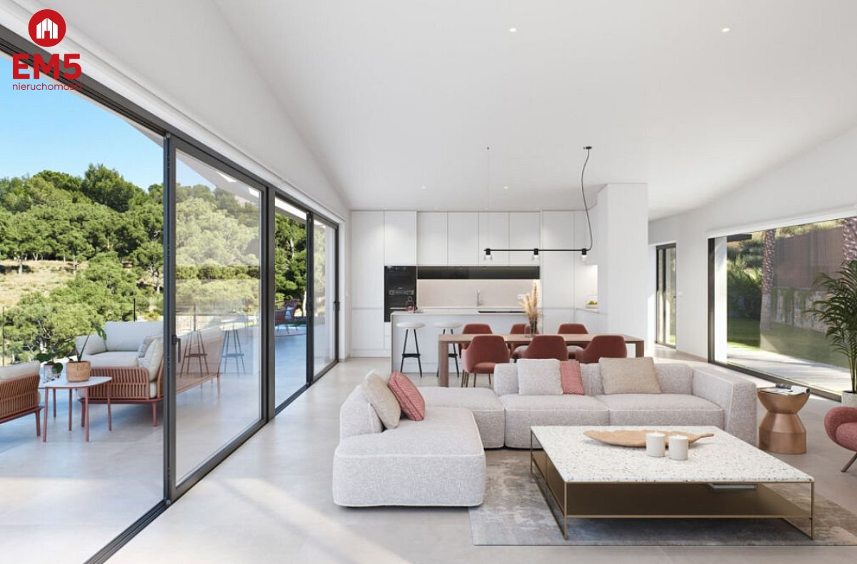 Salon z aneksem kuchennym, 4 sypialnie, 4 łazienki, oddzielne WC.