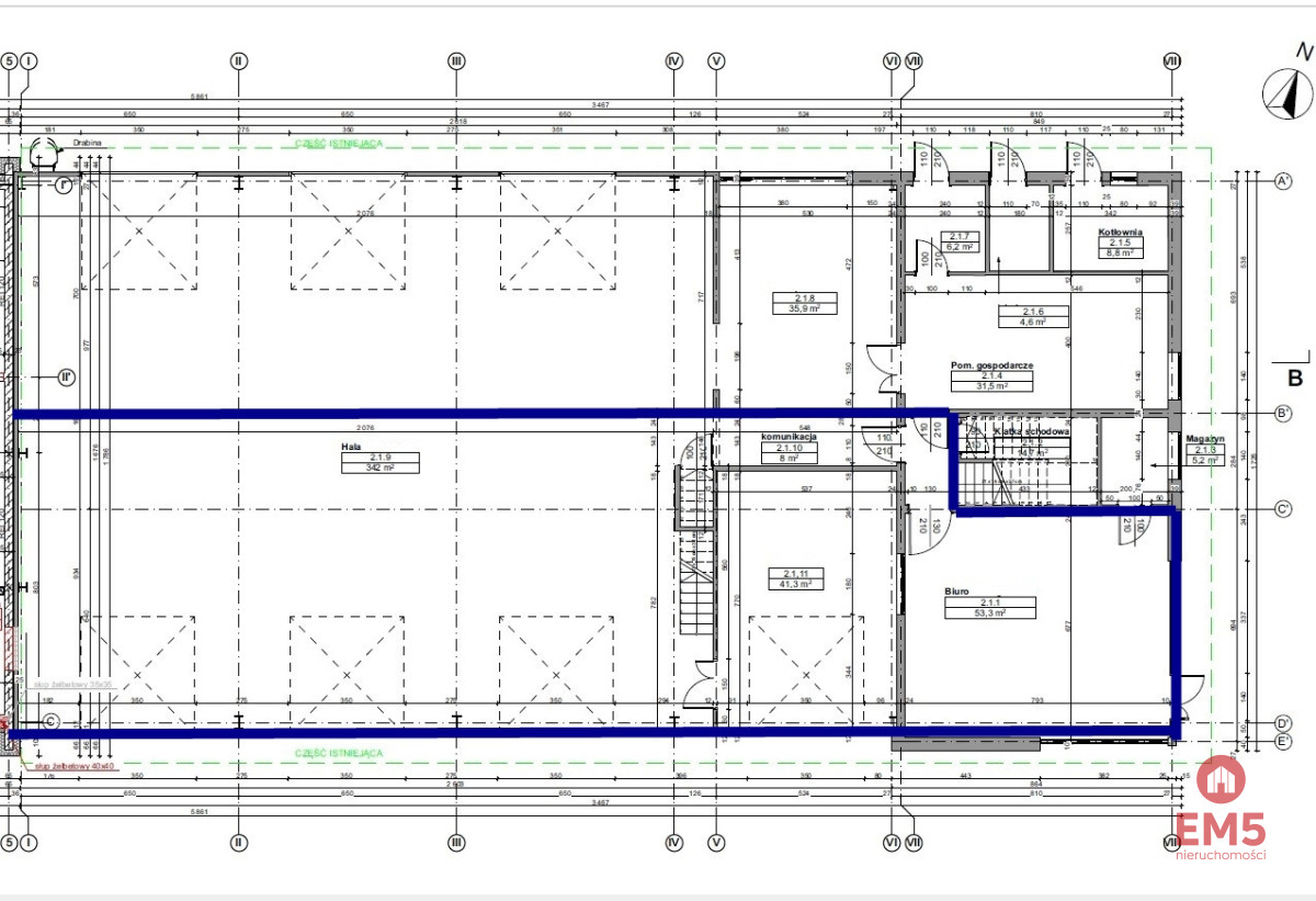 - wysokość hali głównej 5 m