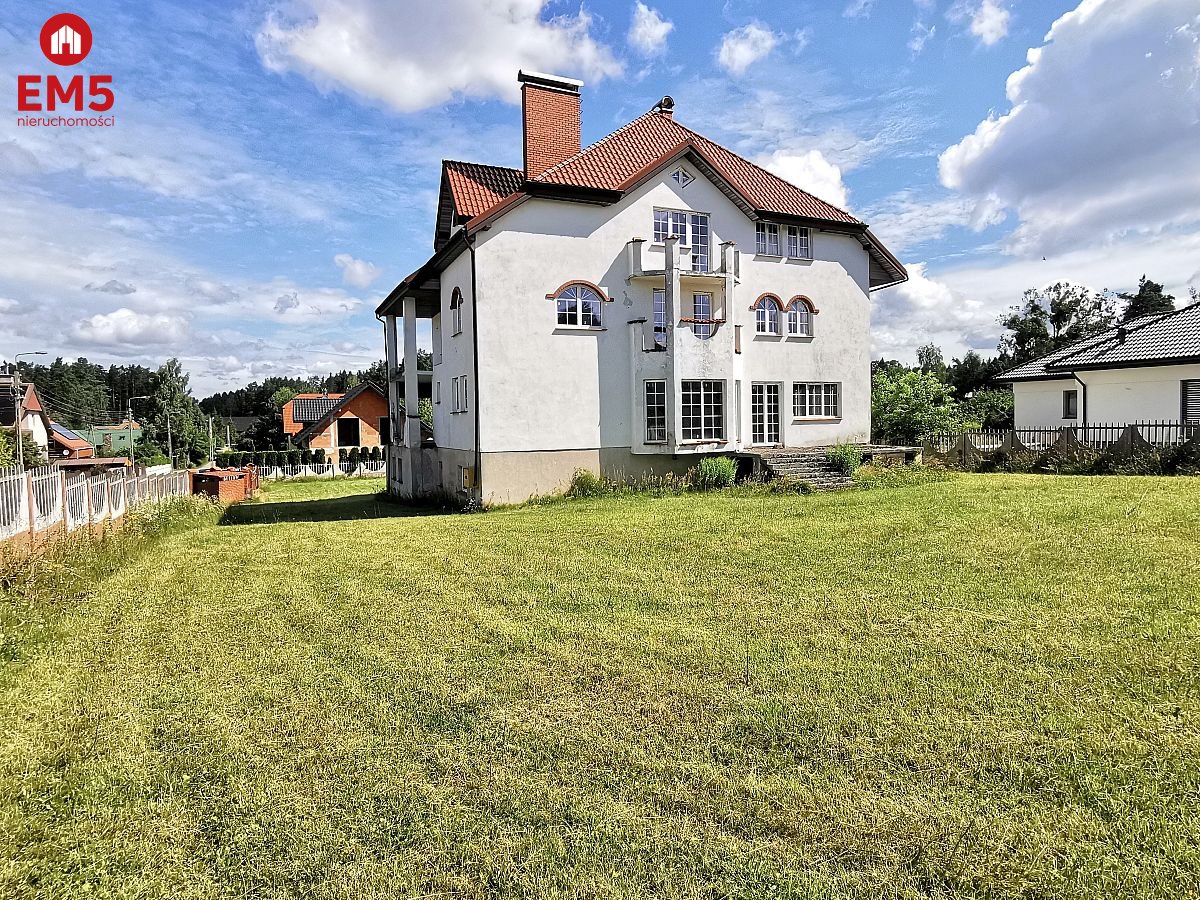Przedstawiam Państwu dom położony w miejscowości Ogrodniczki. Nieruchomość ma powierzchnię ponad 650 m2 z czego 489 m2 stanowi powierzchnię użytkową. Dom posiada 3 piętra oraz poddasze użytkowe. Każde piętro posiada osobny licznik energii elektrycznej co pozwala na podzielenie domu na osobne segmenty. Do budynku zostało również wykonane przyłącze gazowe oraz kanalizacja. Wykonany z wysokiej jakości materiałów, dach pokryty dachówką ceramiczną firmy Winderberger, wzmacniane szyby w oknach. Budynek ocieplony 20mm styropianem oraz wełną. Elewacja budynku do ewentualnego odświeżenia. Istnieje możliwość zamontowania kominka oraz windy dla osób z niepełnosprawnością. Niewątpliwym atutem jest również podsypana i ogrodzona działka w kształcie prostokąta o powierzchni 1914m2.