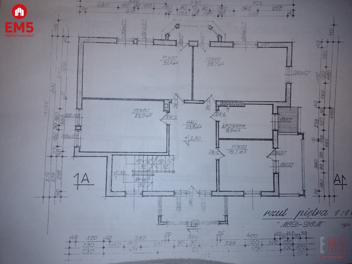 - Poddasze: 3 pokoje, łazienka