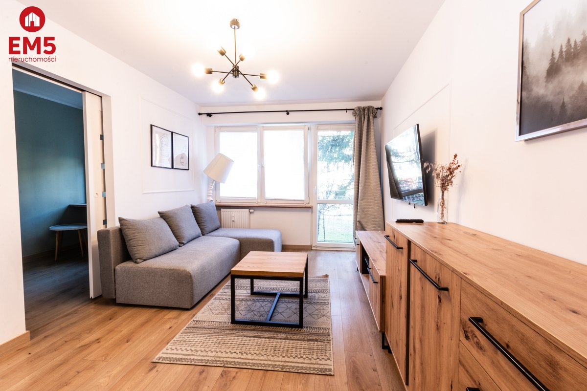 Wnętrza wykończono wysokiej klasy materiałami, a mieszkanie jest w pełni wyposażone, gotowe do zamieszkania.Lokalizacja jest bardzo korzystna: blisko sklepy i przystanki autobusowe (szybki dojazd do centrum miasta). W pobliżu znajdują się również uczelnie wyższe. Dla mieszkańców dostępny jest parking za szlabanem.