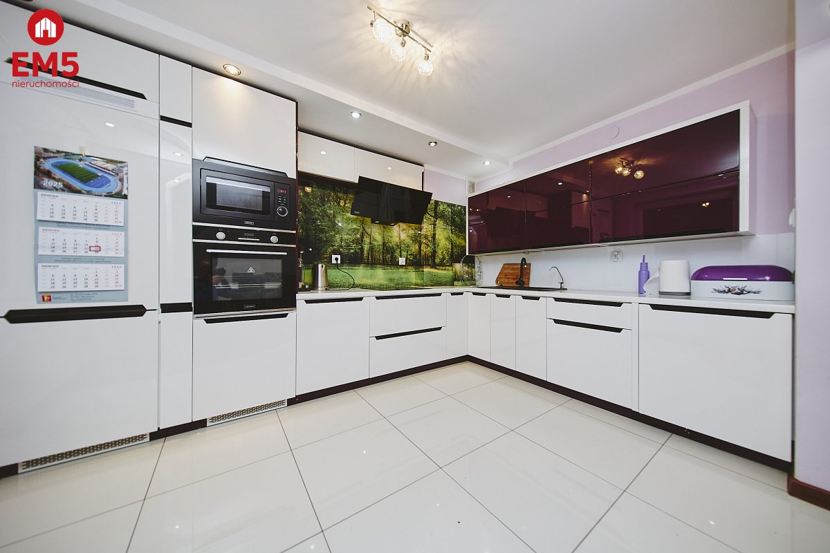 - przestronna kuchnia z pełną zabudową i sprzętem AGD (lodówka, zmywarka, piekarnik, mikrofalówka),
