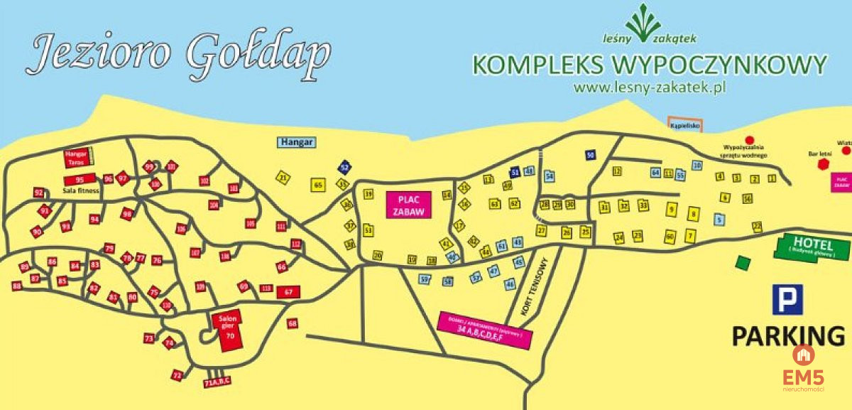 Atrakcje i udogodnienia: Bezpośredni dostęp do jeziora z pięknym brzegiem i kładką, wypożyczalnia rowerów wodnych i sprzętu sportowego, 3 sauny, jacuzzi, 2 place zabaw, boisko, siłownia podniebna.