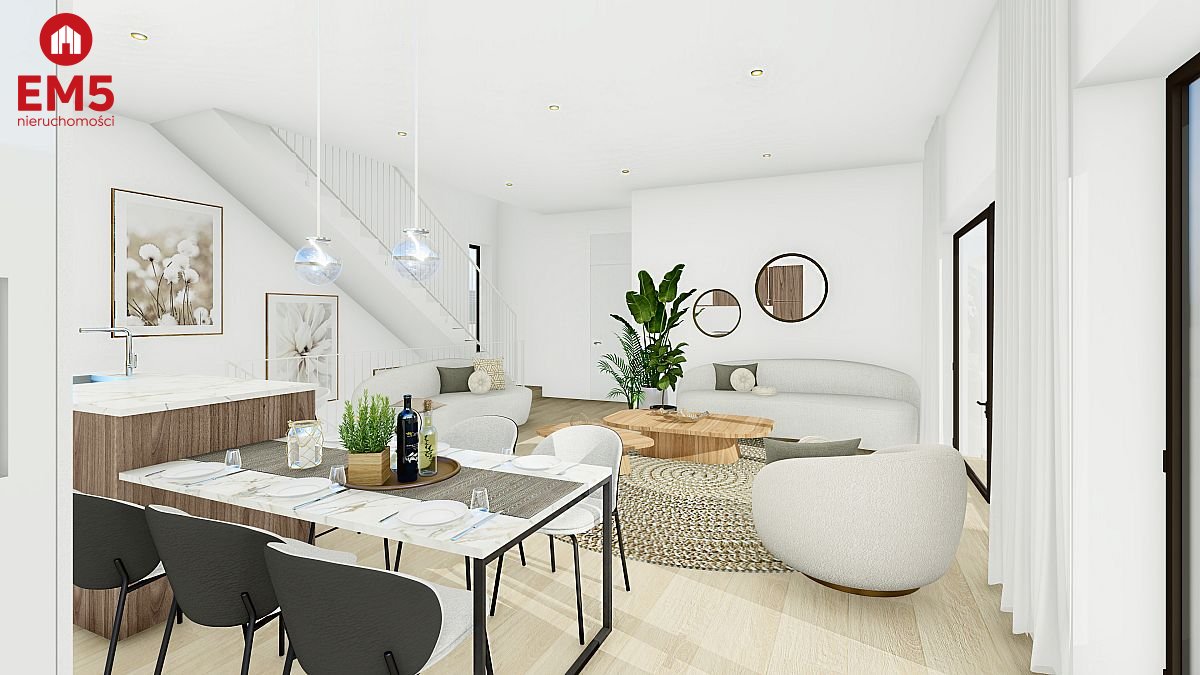 przestronny salon z jadalnią,