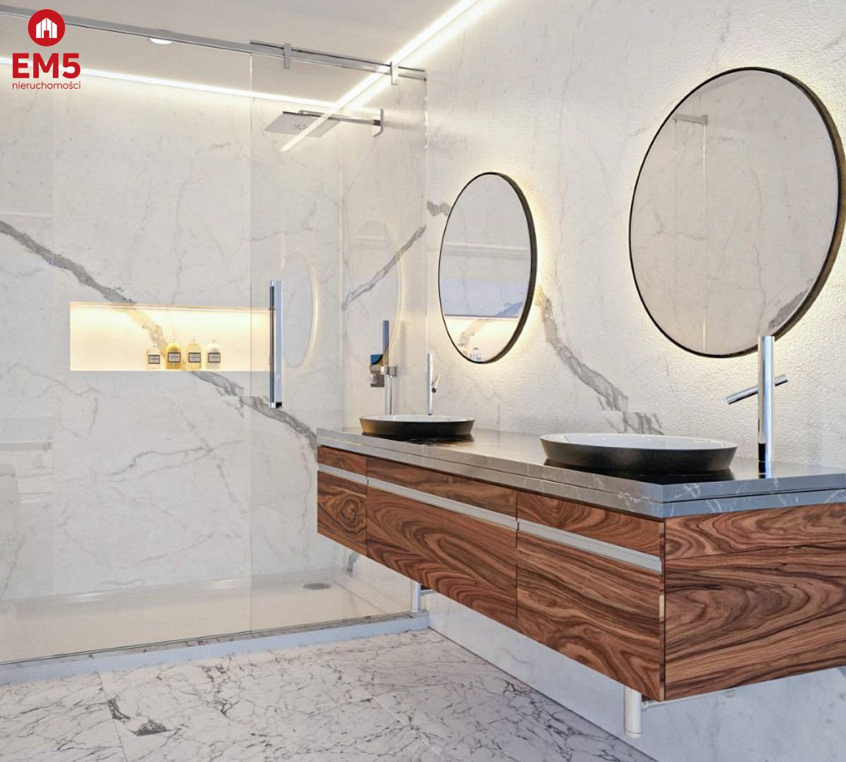 2 duże sypialnie z szafami i łazienkami.
