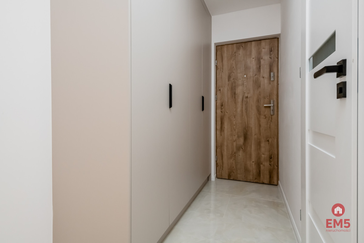 Funkcjonalna zabudowa kuchni wraz z nowoczesnym AGD stwarza idealne warunki do przygotowywania posiłków. Duża szafa zabudowana w korytarzu dodatkowo zwiększa przestrzeń do przechowywania.