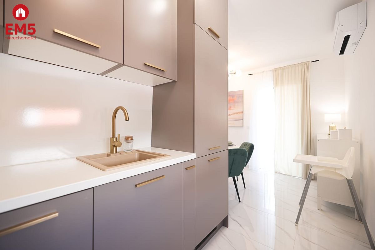 Mieszkanie jest w pełni umeblowane w nowoczesne meble oraz sprzęt AGD na gwarancji. W salonie i łazience ogrzewanie podłogowe, w salonie klimatyzacja.