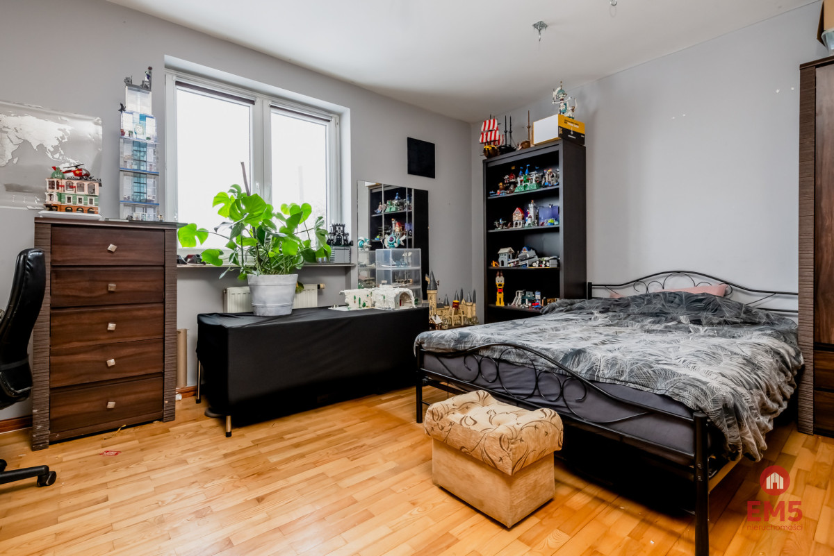 Na parterze znajduje się studio fotograficzne, które może być również przekształcone w inne pomieszczenie użytkowe według potrzeb. Piętro to przestronny salon z wyjściem na duży taras o powierzchni 40 m² - idealne miejsce na relaks i spotkania z bliskimi. Znajdują się tu również funkcjonalna kuchnia, sypialnia oraz łazienka. Na pierwszym piętrze mieszczą się trzy duże sypialnie oraz kolejna łazienka, co zapewnia wygodę i prywatność wszystkim domownikom.