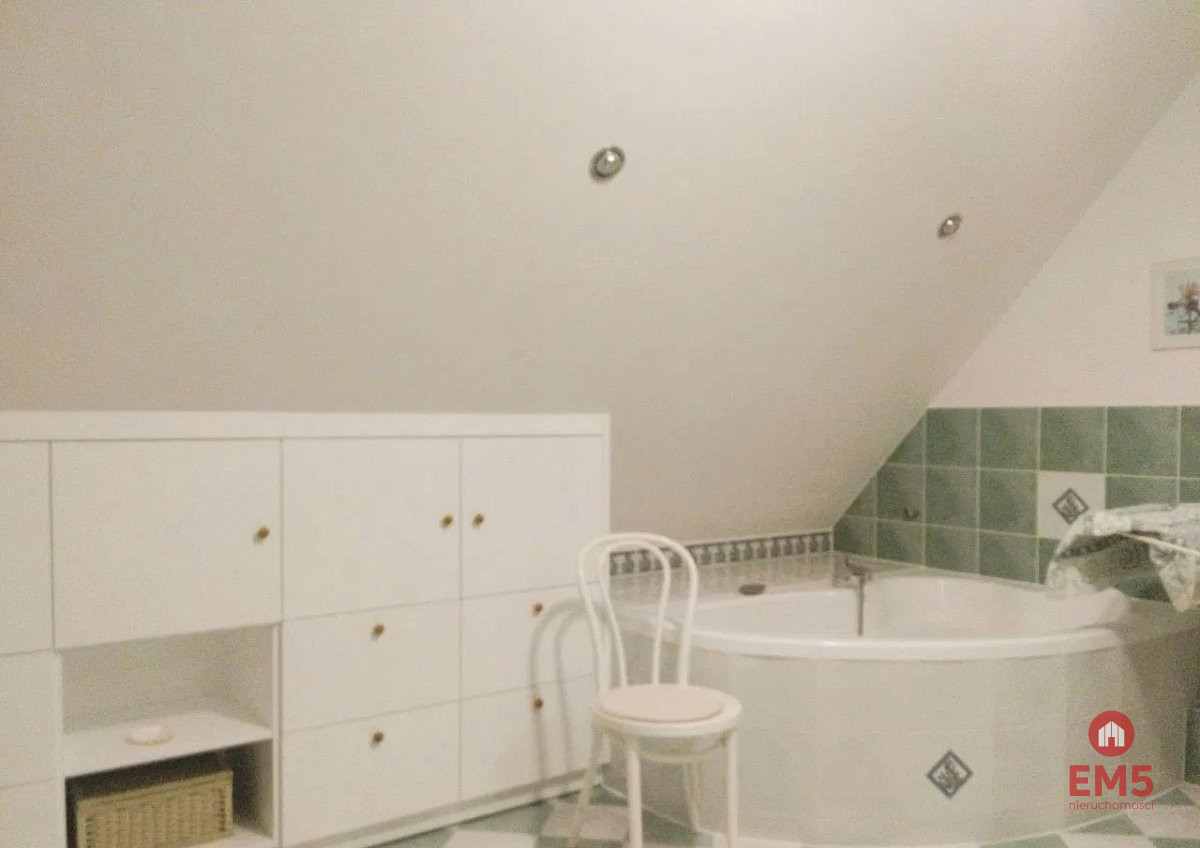 - Na poddaszu znajdują się 4 pokoje, duża łazienka, korytarz.