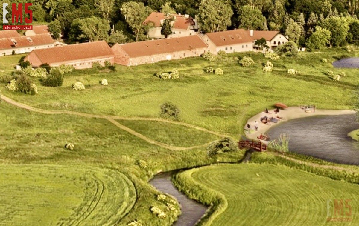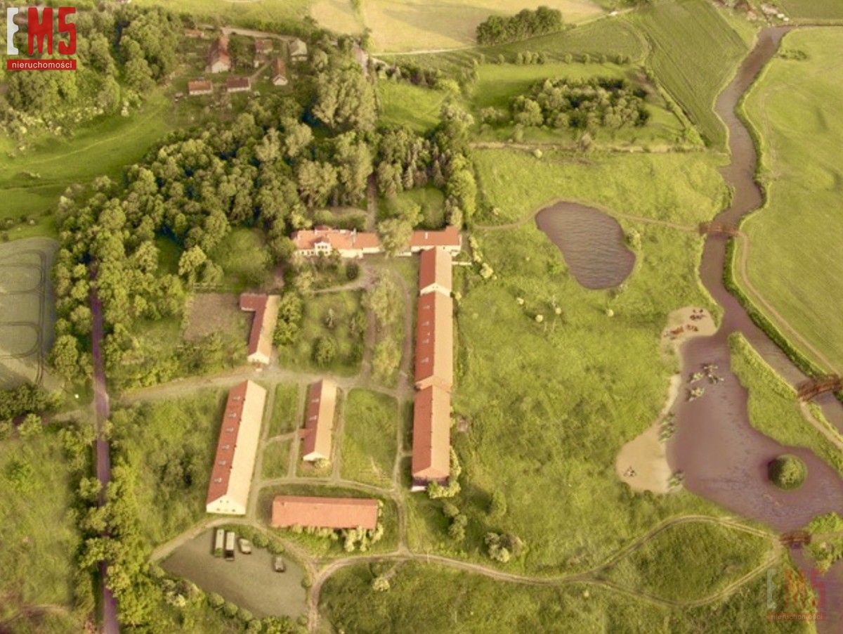 Nieruchomość składa się z : dworku z parkiem, dworku z tarasami wielowidokowymi, magazynu zbożowego, obory widokowa I i II, galerii artsQiad, stodoły, warsztatu, stajni, części parku z rezerwa budowlana ( 2 budynki ), budynku usługowego i stróżówki.Istnieje możliwość zakupu od 30 ha do 280 ha, granicząc z działka w Garbnie.