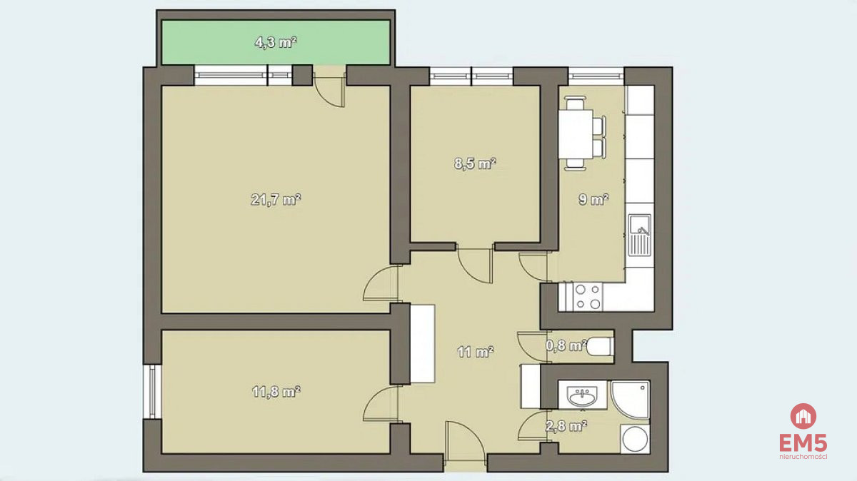 3-pokojowe mieszkanie z możliwościami | 62,9 m2 | ul. Stroma