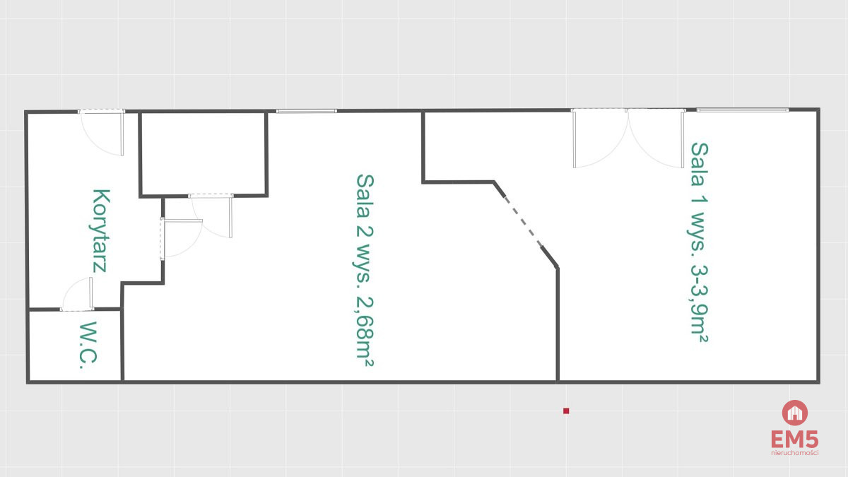sala o powierzchni 23 m2 (wysokość 3,0m - 3,9m)