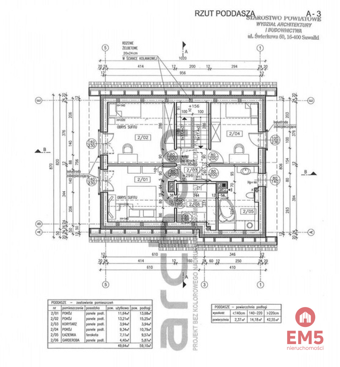 Poddasze: 3 sypialnie, łazienka, hall, garderoba.