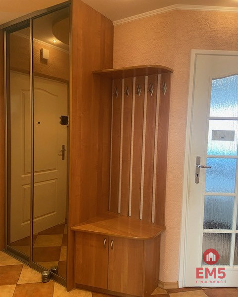 -przedpokój z szafą w zabudowie oraz komodą,