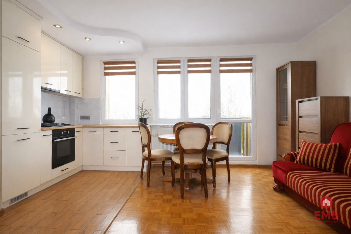 - Przestronny salon z aneksem kuchennym oraz wyjściem na balkon,