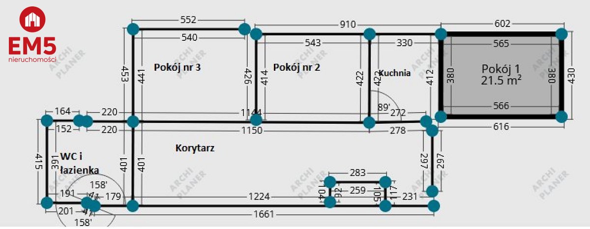 - Układ: 3 niezależne pokoje, osobna kuchnia, łazienka z WC