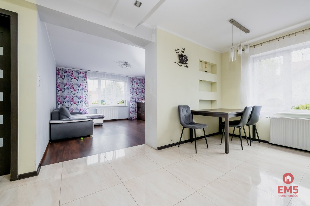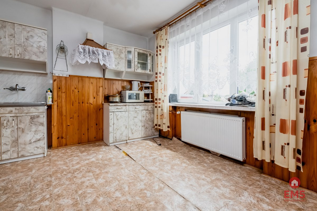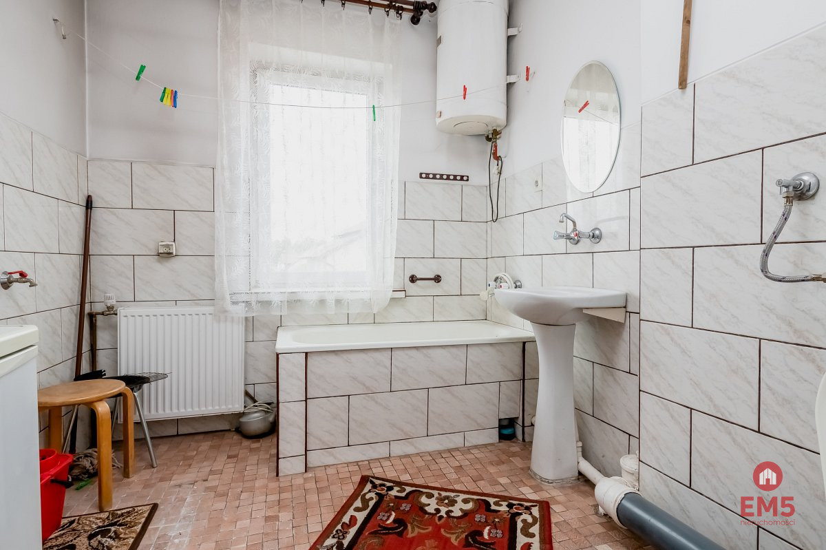 - 1 piętro: po generalnym remoncie, do odświeżenia, dwa pokoje, salon z aneksem kuchennym, łazienka z wanną, balkon. W części kuchennej zastosowano podgrzewanie podłogowe.