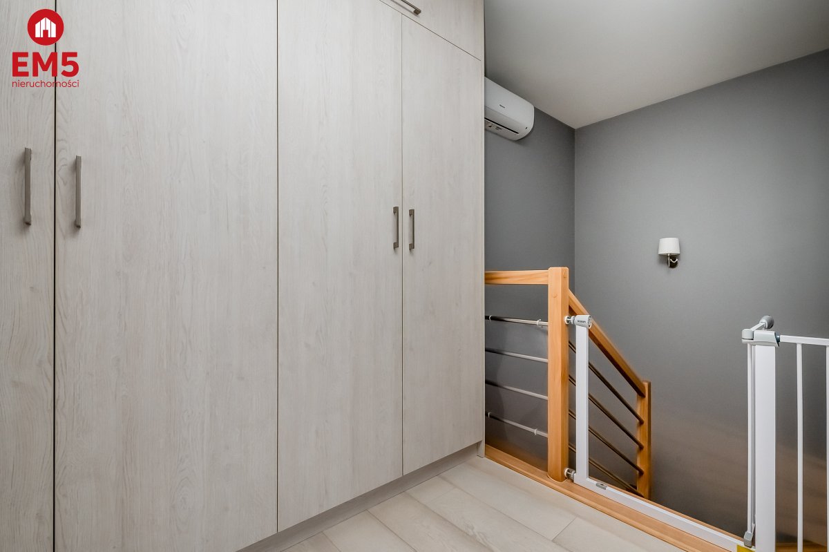 Dom wyposażony jest w nowoczesny piec dwufunkcyjny Viessmann, co gwarantuje efektywne ogrzewanie. Do nieruchomości przynależy również użytkowe poddasze, które można zaadaptować według własnych potrzeb. Dodatkowo, do dyspozycji jest jedno miejsce postojowe oraz pomieszczenie gospodarcze. Ogródek stanowi idealne miejsce na zabawę dla dzieci lub ogrodowe przyjęcia.