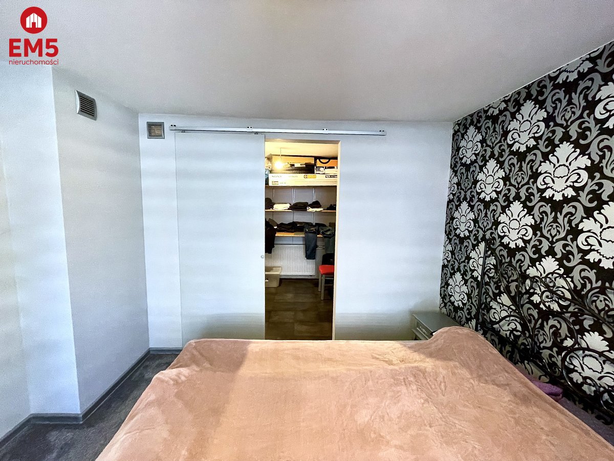 Układ domu został zaprojektowany z myślą o wygodzie codziennego życia. Wnętrze obejmuje salon połączony z kuchnią, trzy pokoje oraz dwie łazienki. Jedna z łazienek jest w pełni wykończona, natomiast druga przeznaczona jest do remontu, co daje możliwość aranżacji według własnych potrzeb. Jedna z sypialni posiada wydzieloną garderobę - praktyczne rozwiązanie, które ułatwia organizację i zwiększa komfort użytkowania.