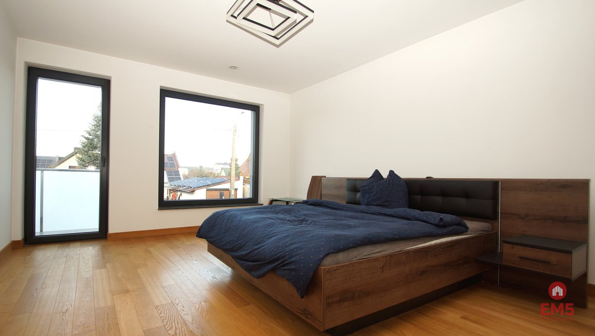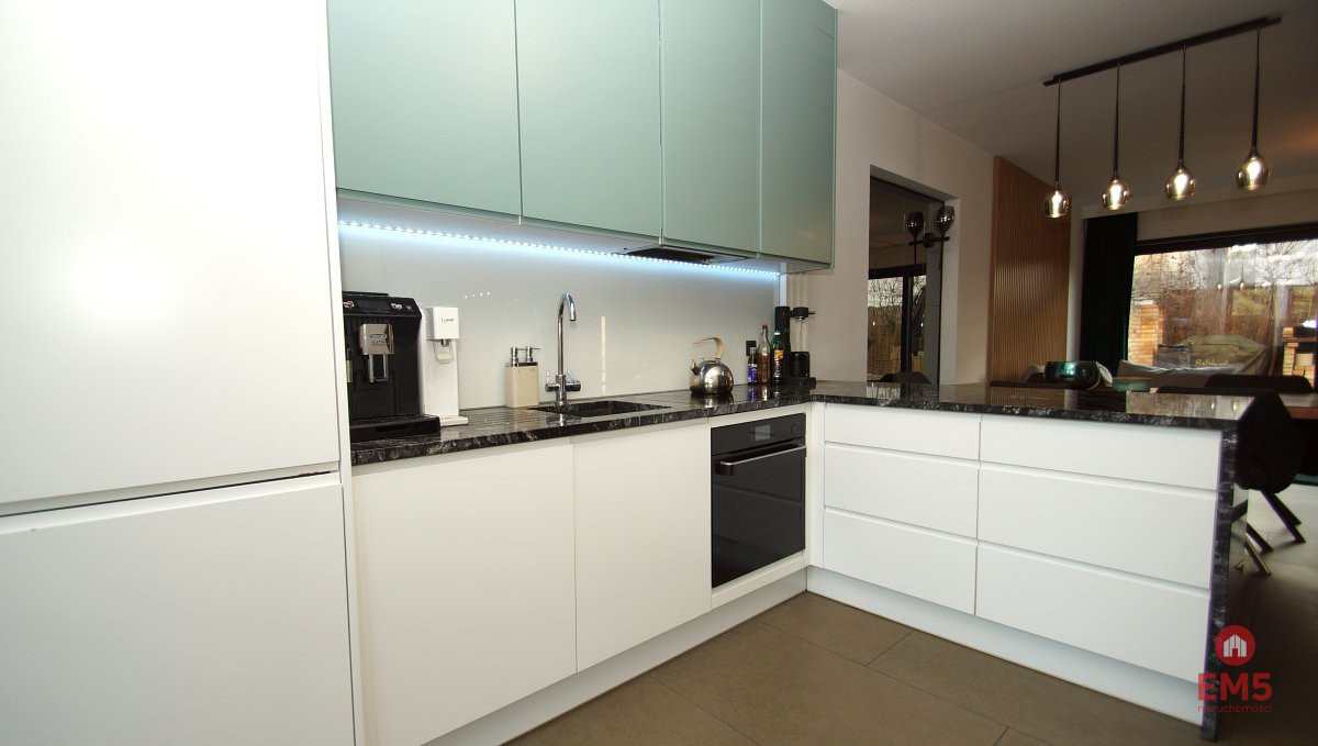 Na sprzedaż wyjątkowy dom wolnostojący z 2020 roku położony na osiedlu Skorupy na cichej ulicy z pełną infrastrukturą w promieniu kilometra. Właściciel zajmuje się budową domów i w oparciu o swoje doświadczenie wybrał cegłę ceramiczną jako materiał do budowy swojego minimalistycznego domu z dwustanowiskowym garażem oraz logią w bryle budynku. Działka 300 m2 wyłożona kostką z przodu budynku a z tyłu taras oraz trawnik. Elewacja wykonana z białego tynku oraz naturalnego kamienia. Wnętrze zaprojektowane przez architekta który połączył estetykę, komfort i funkcjonalność. Do wykończenia zostały użyte materiały najwyższej jakości - dębowe podłogi i schody, marmurowy blat w kuchni, duże przeszklenia i przesuwne drzwi tarasowe HS. Ogrzewanie podłogowe w całym domu z każdym pomieszczeniem sterowanym oddzielnie, 2 klimatyzacje, energooszczędna rekuperacja oraz piec gazowy. Logia o powierzchni 17m2 nie wliczona w powierzchnię użytkową, balustrada wykonana z mlecznego szkła.
