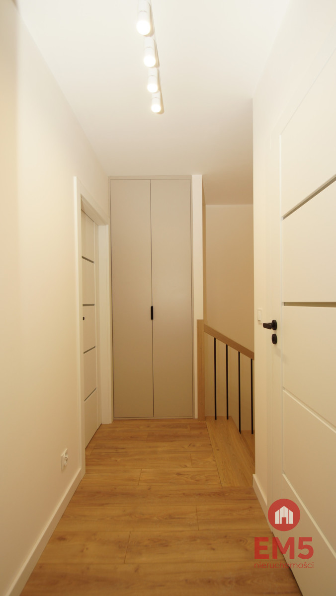 Przedstawiam świeżo wykończoną szeregówkę położoną na osiedlu Skorupy, nowoczesny styl wykończenia w jasnych kolorach oraz duże przeszklenia sprawiają że wnętrze jest jasne i przestronne. Nieruchomość jest wyposażona w klimatyzację zamontowaną nad schodami, piec gazowy w szafie w przedpokoju oraz panele fotowoltaiczne na dachu. Świetnie przemyślany układ pomieszczeń w pełni wykorzystuje powierzchnię.