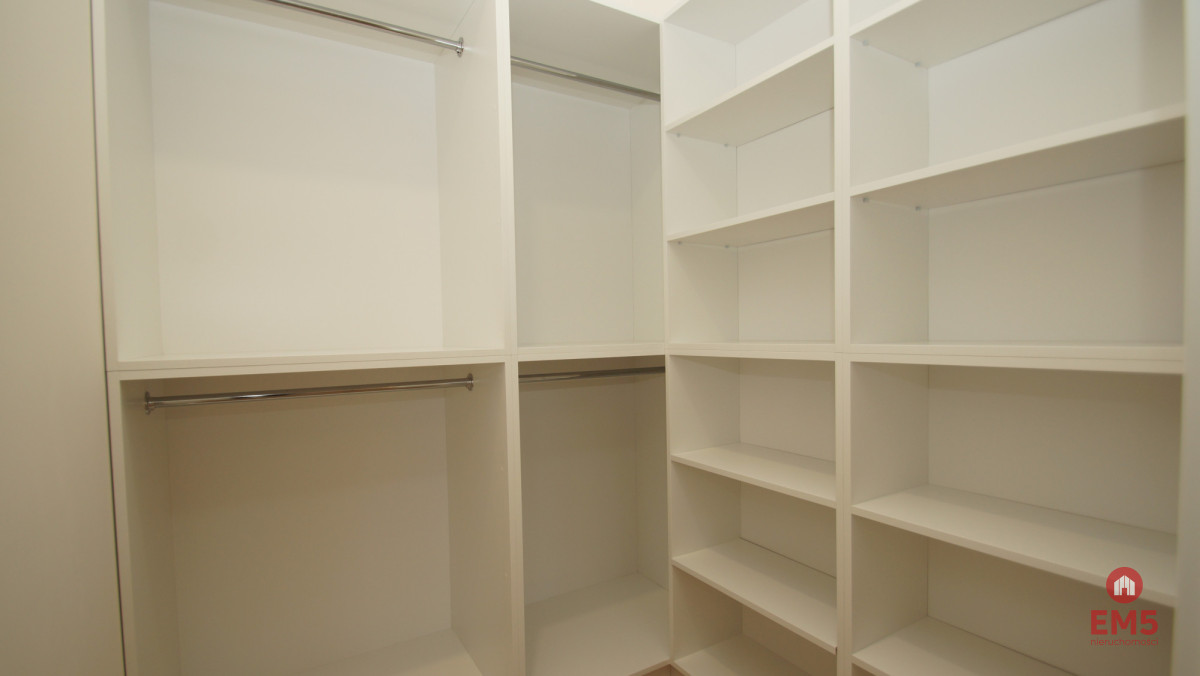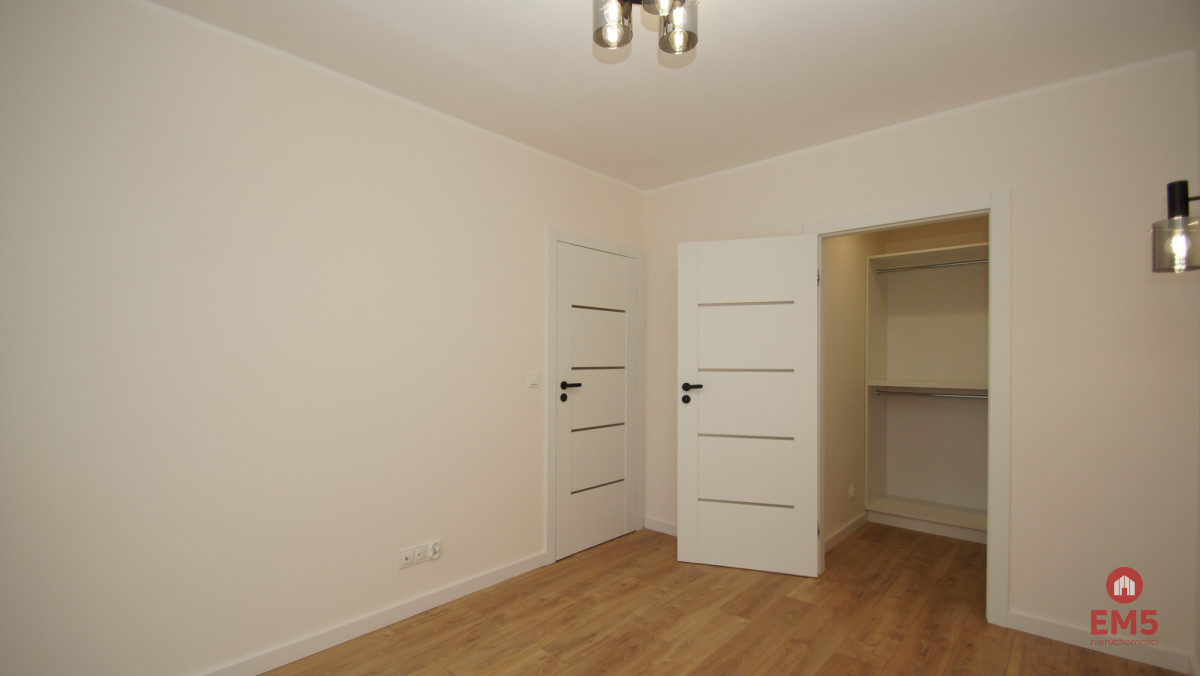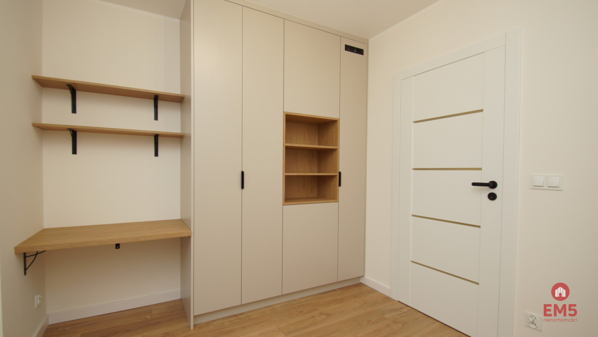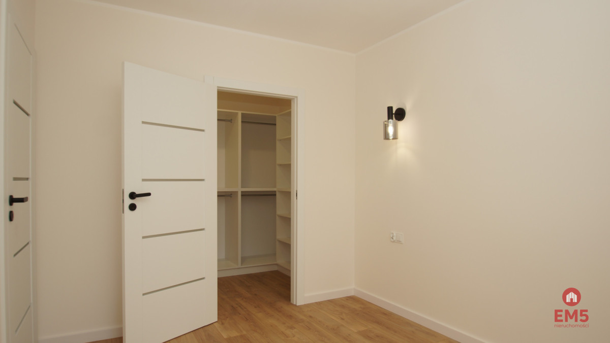 Piętro: Sypialnia z garderobą, sypialnia z zabudową i balkonem, łazienka, przedpokój z szafą w zabudowie
