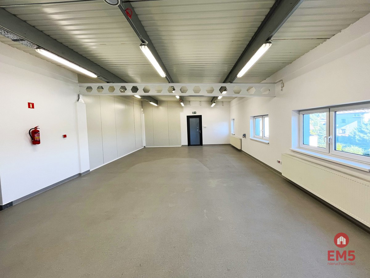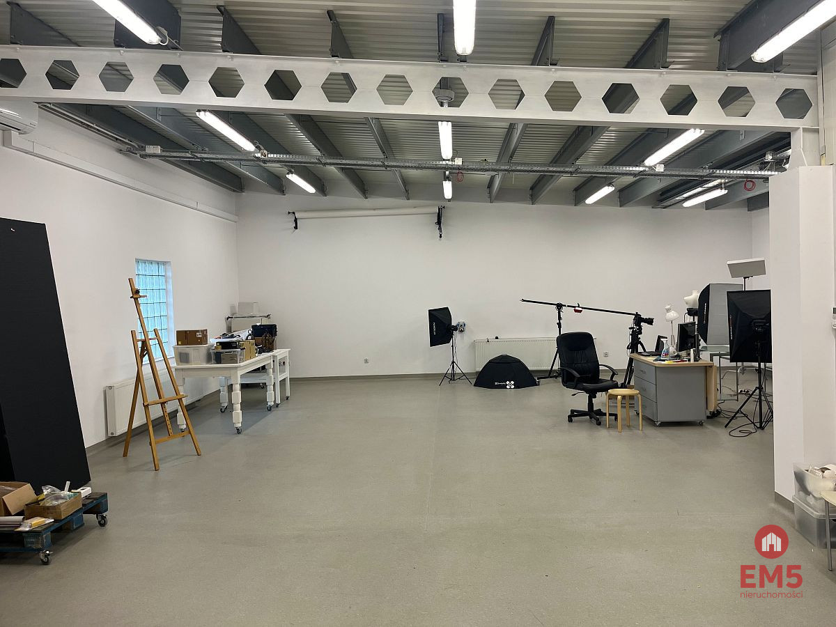 Możliwość wynajęcia także reprezentacyjnej części biurowej w budynku o pow. 180m2 - do wykończenia od stanu deweloperskiego, (szczegóły w odrębnym ogłoszeniu).