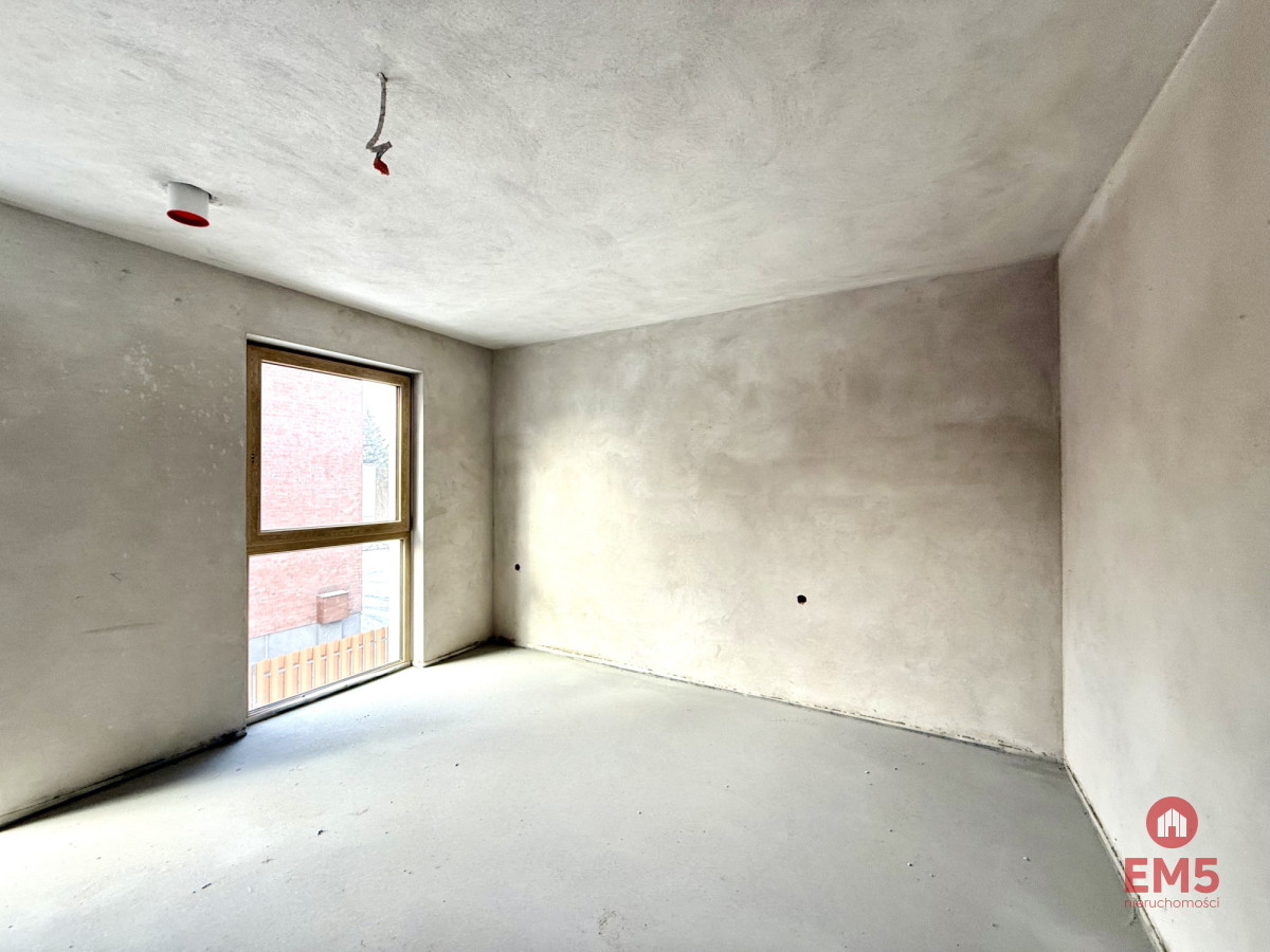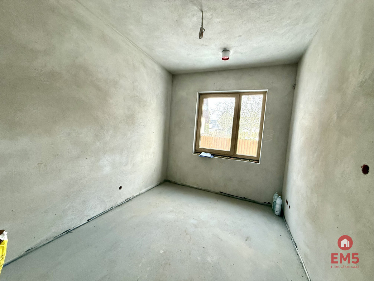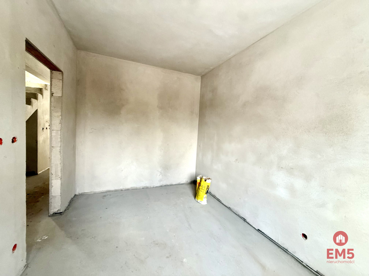 Na parterze znajduje się przestronny salon z aneksem kuchennym i wyjściem do ogródka o powierzchni około 25 m², dodatkowy pokój idealny na gabinet lub sypialnię, WC oraz wiatrołap. Na piętrze mieszczą się dwie ustawne sypialnie oraz łazienka. Dodatkowym atutem jest poddasze do własnego zagospodarowania, co daje możliwość stworzenia dodatkowej przestrzeni według indywidualnych potrzeb.
