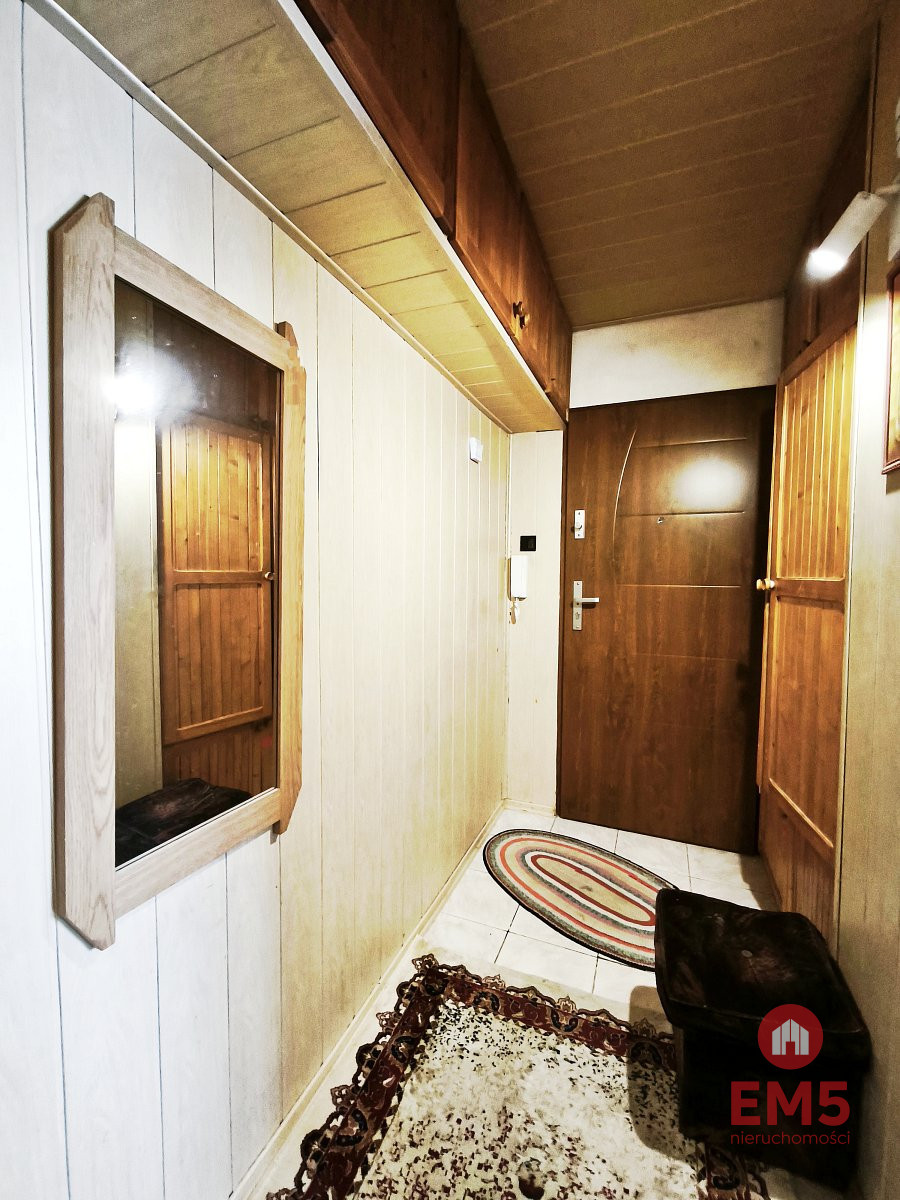 - Przedpokój z dużą zabudowaną szafą i lustrem