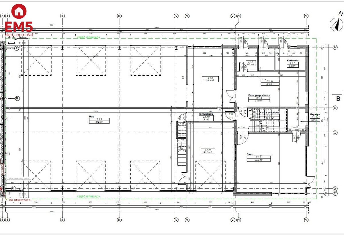 - wysokość hali głównej 5 m