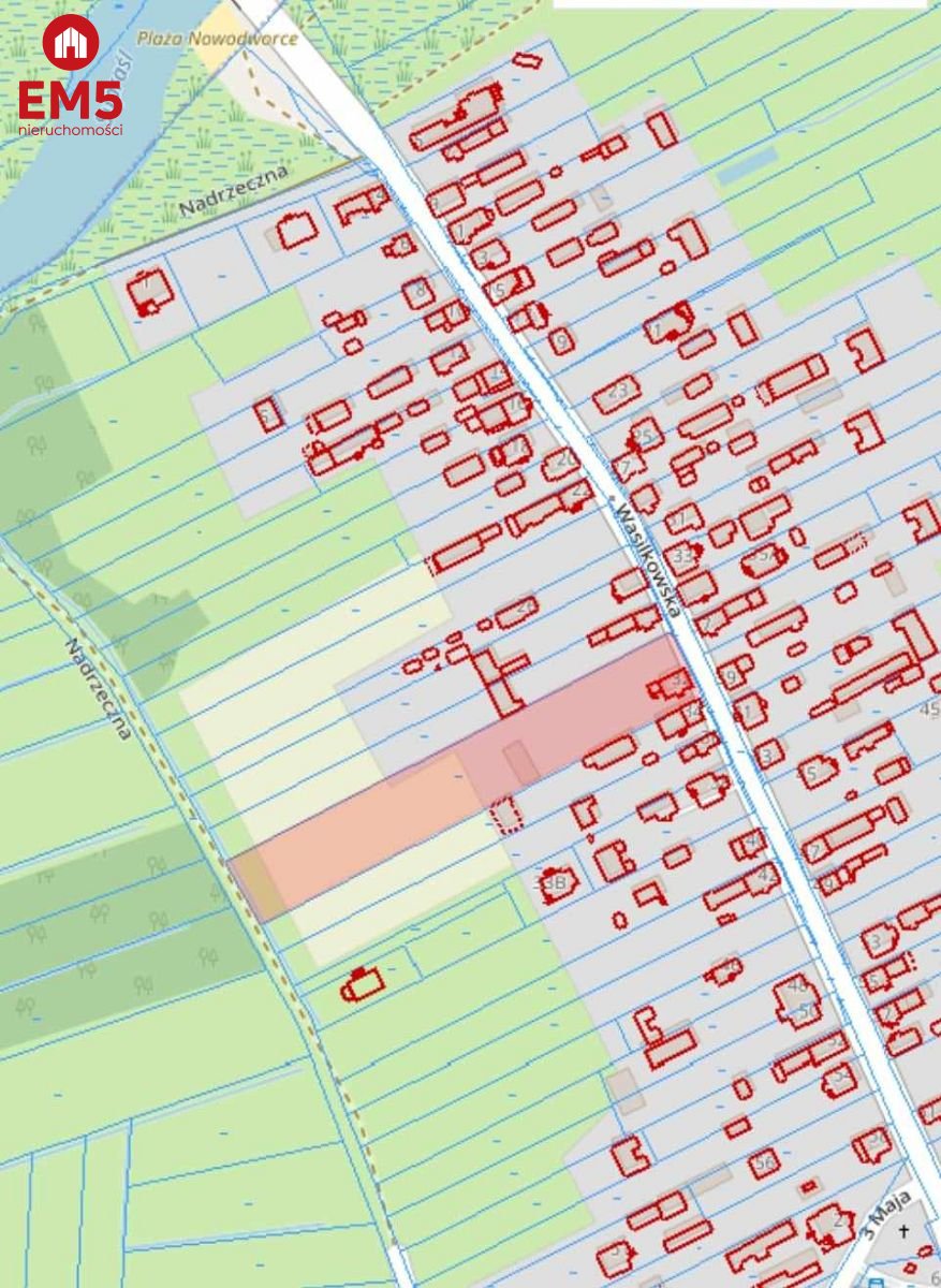 Działka posiada dojazd z dwóch stron od ulicy Wasilkowskiej i Nadrzecznej. Na działce znajduje się dom murowany z 1910 roku, nadający się do generalnego remontu. Dom nie jest objęty opieką konserwatora zabytków. Obecnie 2515m2 stanowi cześć budowlana, pozostała cześć to działka rolna.