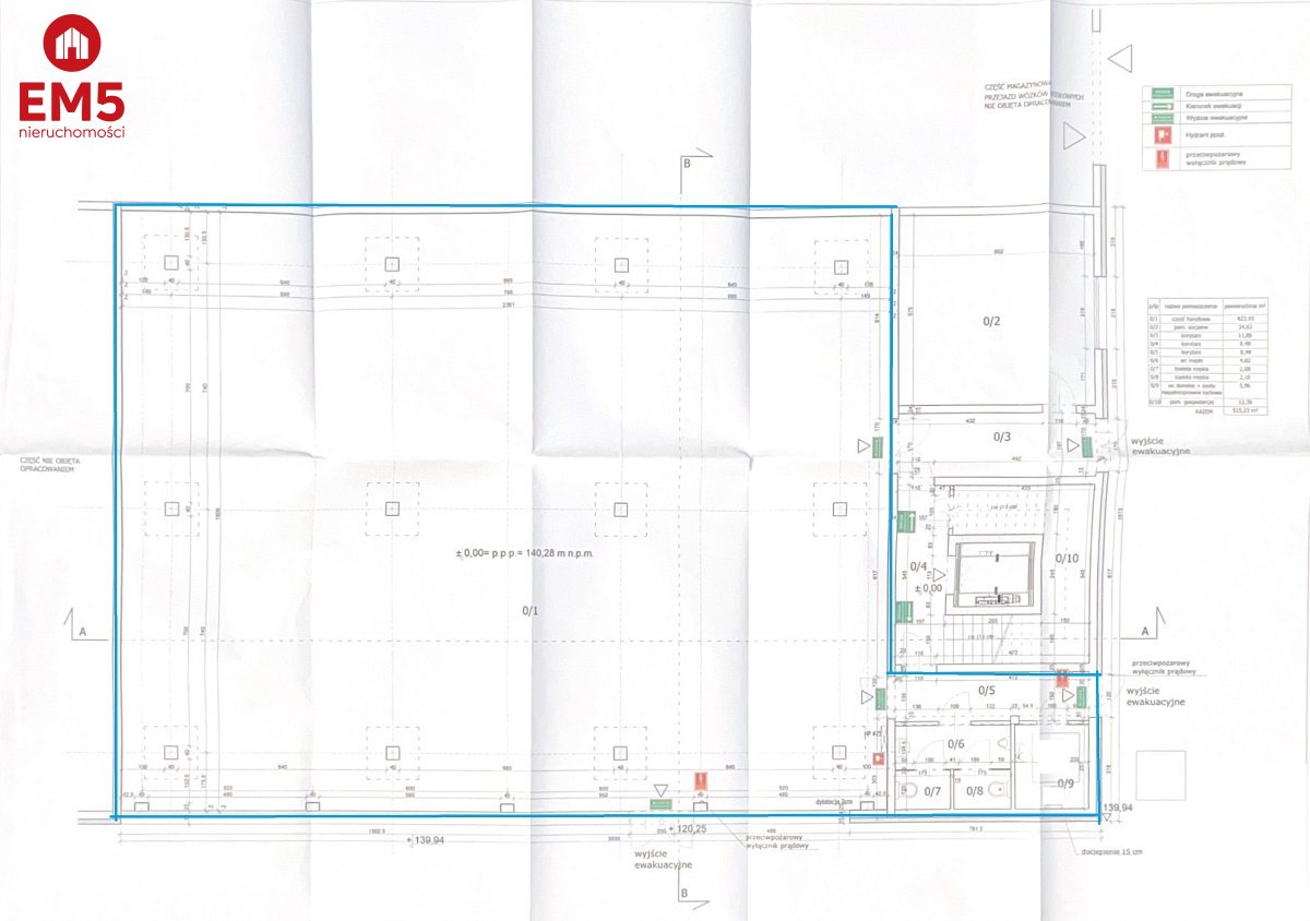 - hala "open space" o powierzchni 423 m2 (23 m x 18 m)