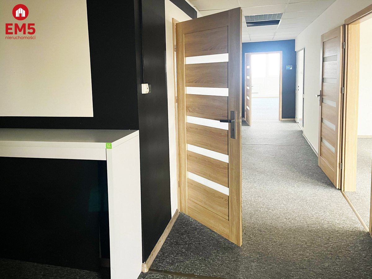 - 6 pomieszczeń biurowych, korytarz, kuchnia, część socjalna.