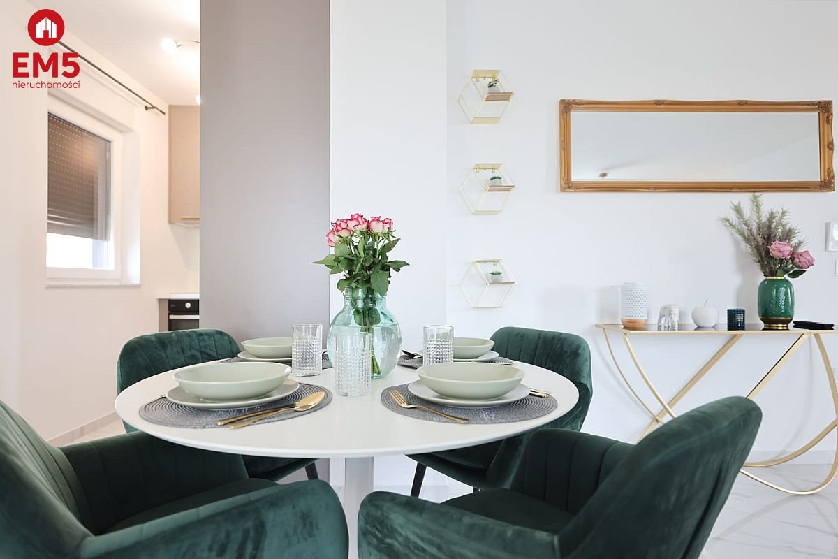 Mieszkanie jest w pełni umeblowane w nowoczesne meble oraz sprzęt AGD na gwarancji. W salonie i łazience ogrzewanie podłogowe, w salonie klimatyzacja.
