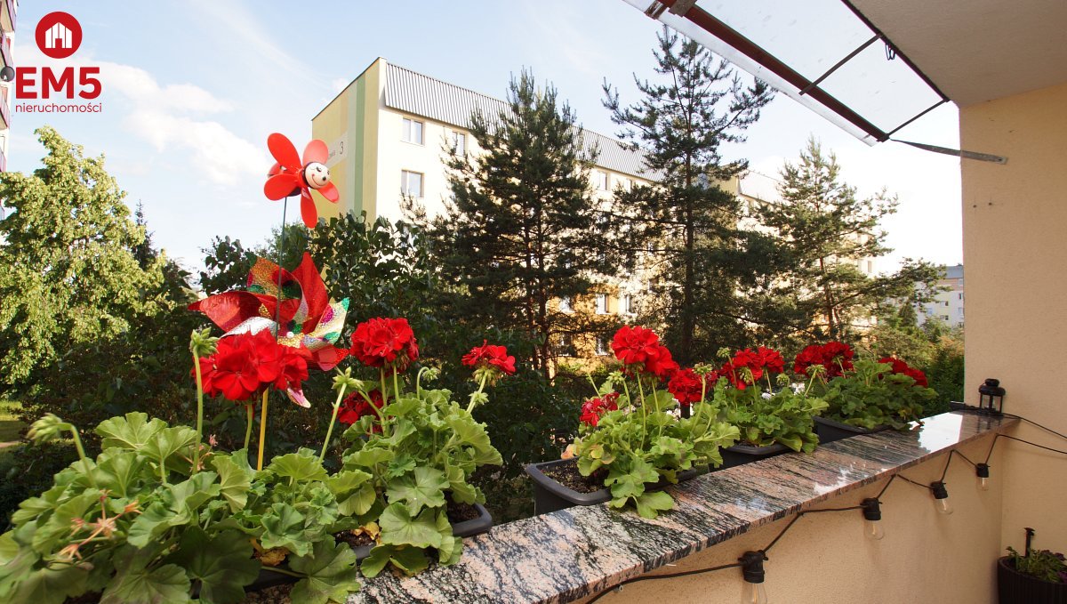 - dużego balkonu z widokiem na zieleń