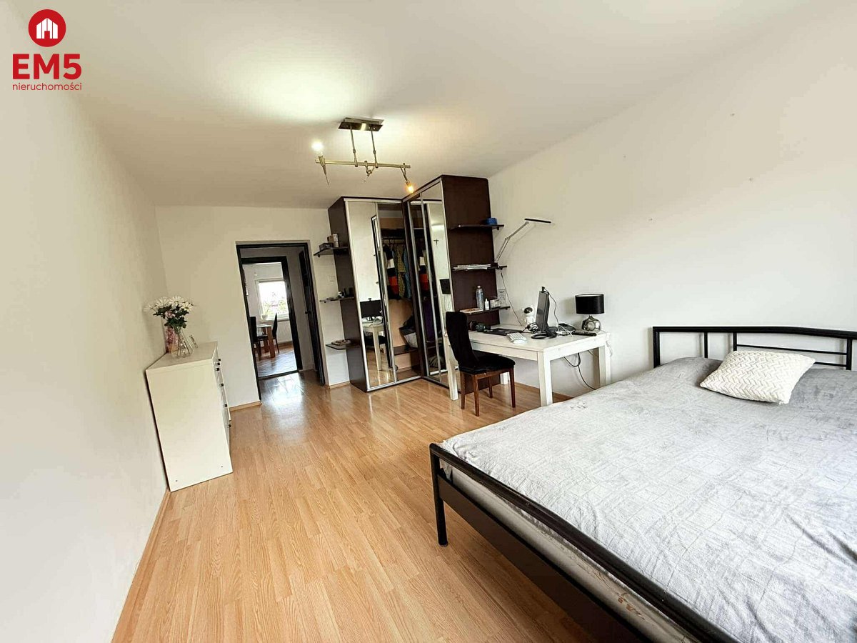 -przestronny salon z dużą szafą i łóżkiem