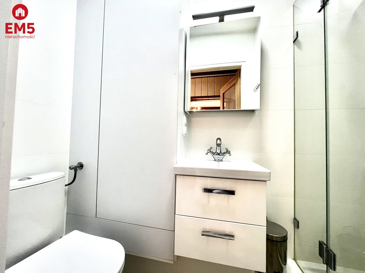Mieszkanie posiada 1 pokój. Dodatkowo w skład pomieszczeń wchodzą: oddzielna kuchnia oraz łazienka z wc. Mieszkanie znajduje się na IV piętrze, jest całkowicie urządzone. Do czynszu najmu 1300 zł należy doliczyć rachunki za gaz, prąd, woda i czynsz . Kaucja wynosi 1300 zł. Biuro pobiera prowizję