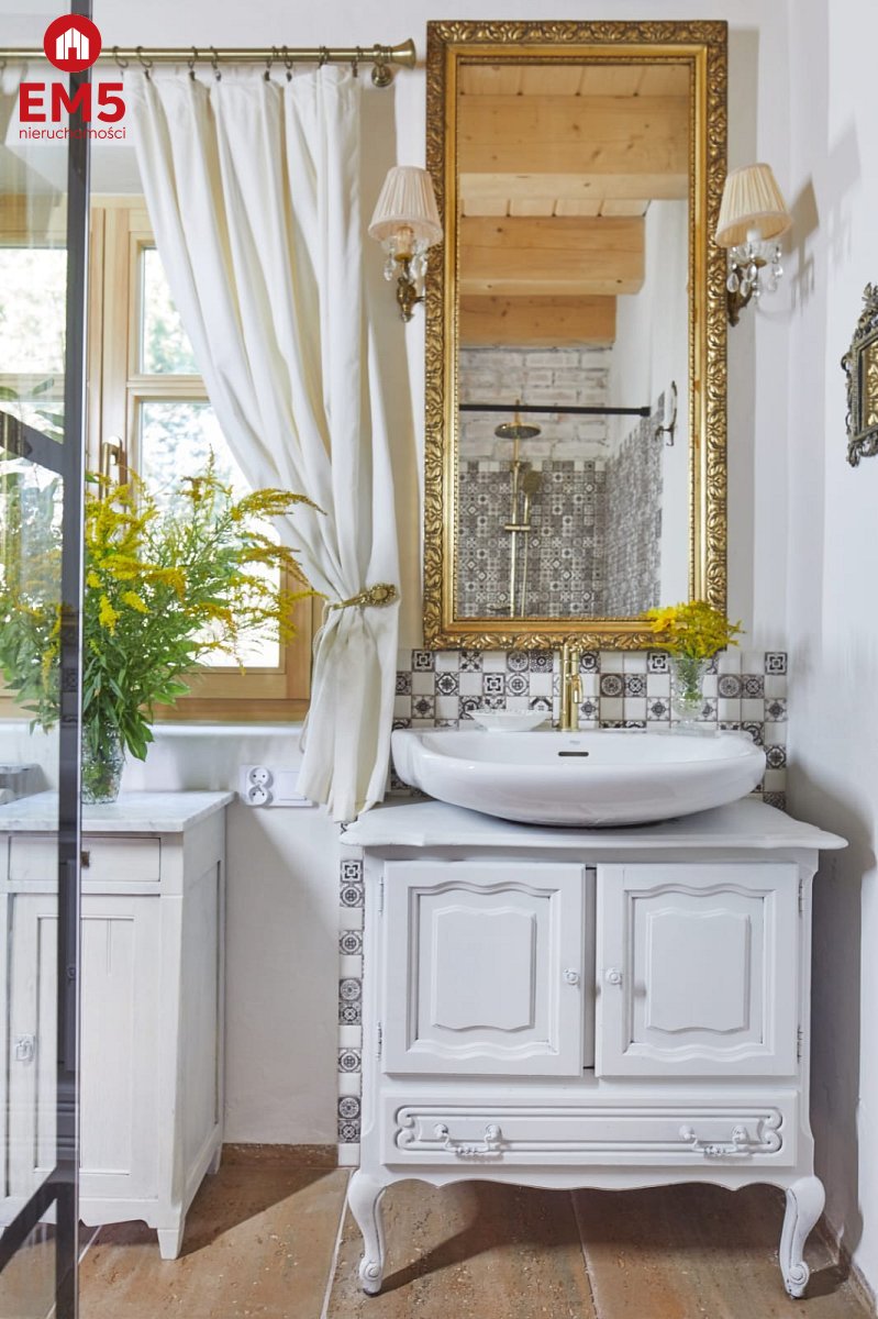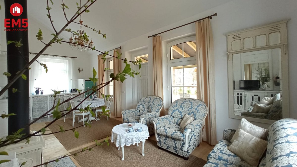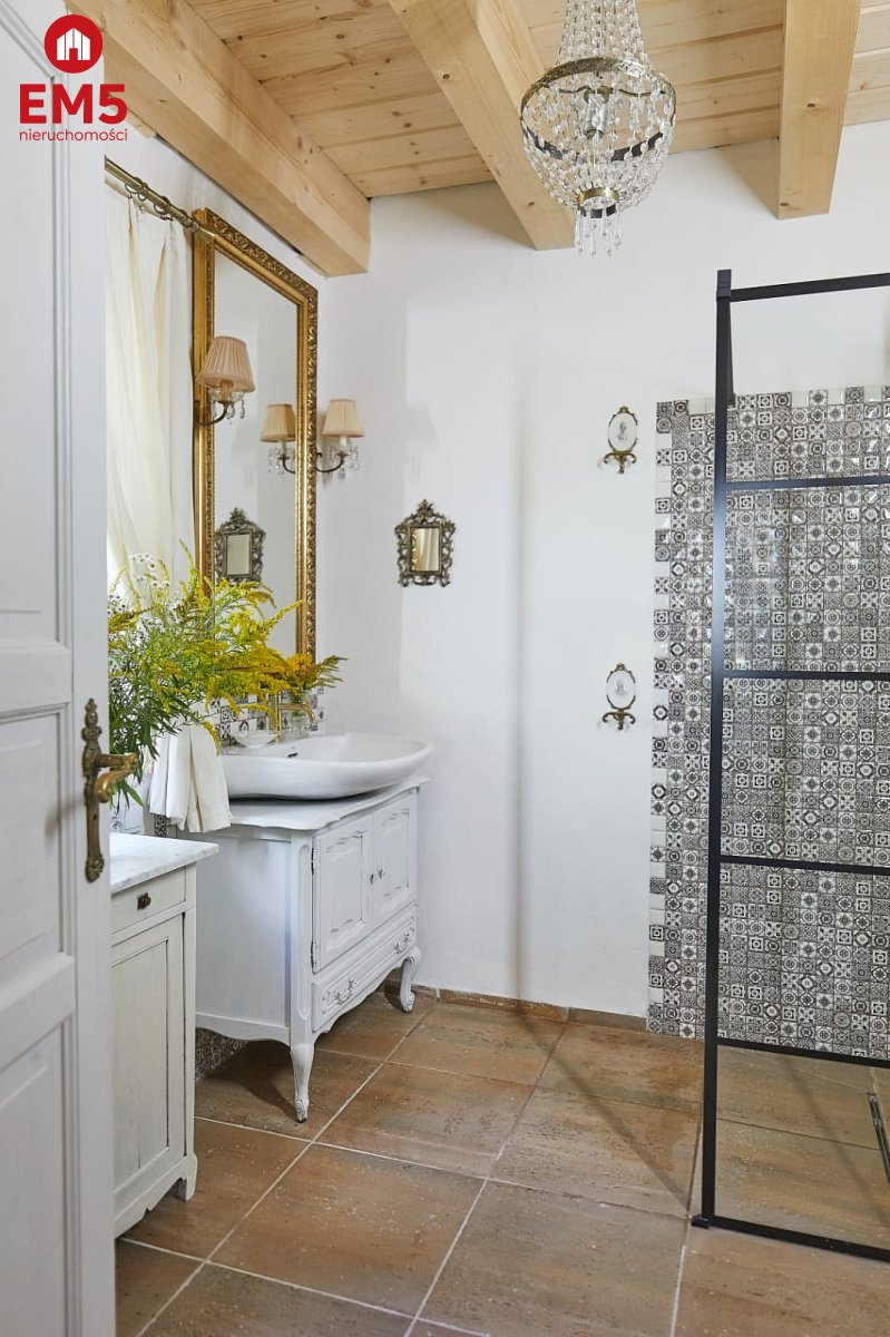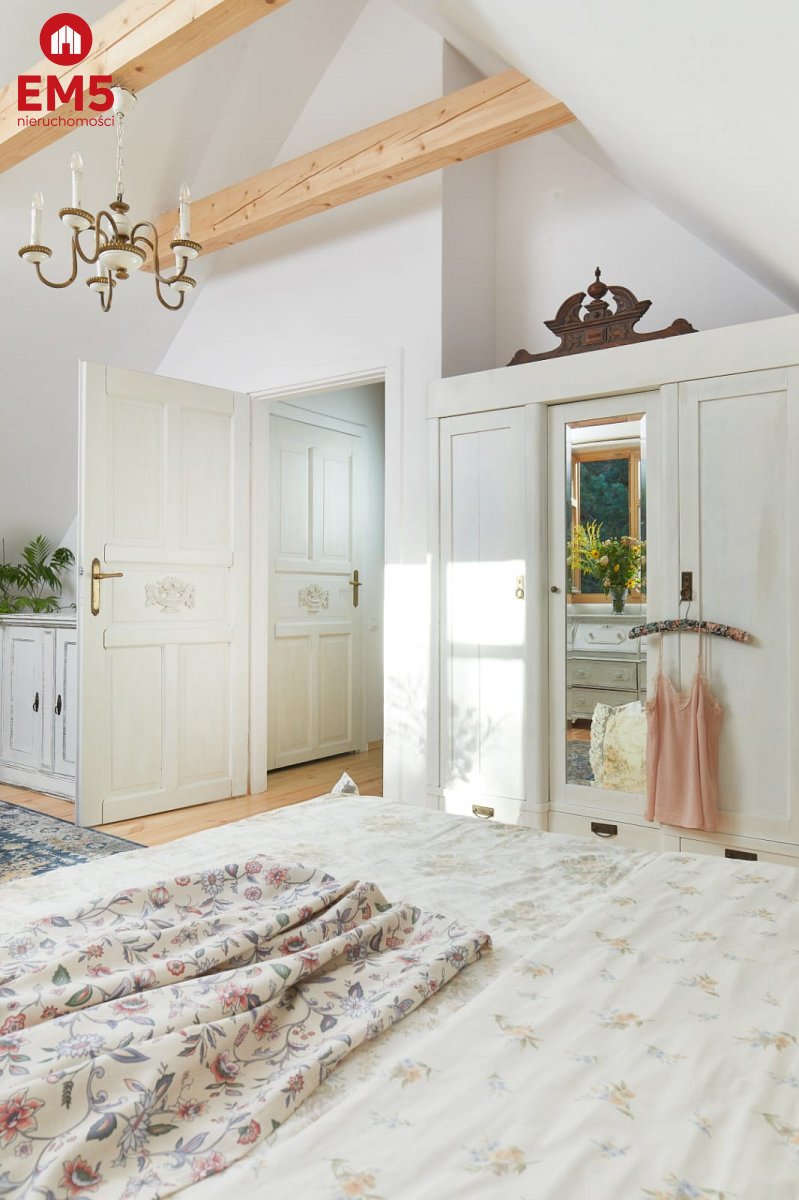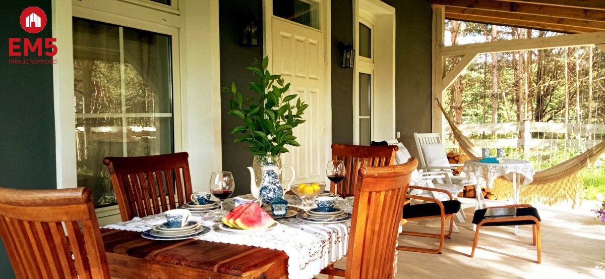 Wchodząc do tego domu masz wrażenie, jakby czas na chwilę się zatrzymał. Już od progu otacza Cię ciepło i wyjątkowy klimat wnętrza - przestronny salon z klimatycznym kominkiem Jotul zaprasza, by usiąść wygodnie i zanurzyć się w atmosferze spokoju. Obok czeka jasna, funkcjonalna kuchnia, na widok której momentalnie wyobrażasz sobie poranne śniadania w domowej atmosferze, a także komfortowa łazienka z prysznicem, zapewniająca wygodę codziennego życia. Gdy wejdziesz po solidnych, drewnianych schodach na piętro, odkryjesz dwie urokliwe sypialnie - idealne miejsca, by zwinąć się w miękkiej pościeli i odpocząć po dniu pełnym wrażeń. Tuż obok znajduje się dodatkowa toaleta, zapewniająca wygodę domownikom i gościom. Na zewnątrz, z salonu, wychodzisz na ozdobny, 20-metrowy taras z rzeźbionymi słupami, gdzie poranne promienie słońca i śpiew ptaków tworzą niepowtarzalną aurę. A kiedy zejdziesz do piwnicy, odkryjesz cztery osobne pomieszczenia - przestrzeń, którą możesz wykorzystać według własnych potrzeb: od pracowni, przez siłownię, po dodatkowe zaplecze gospodarcze. Ten dom to prawdziwa architektoniczna perełka - doceniona przez prestiżowy magazyn Weranda Country, który poświęcił jej aż 16 stron wraz z profesjonalną sesją zdjęciową!