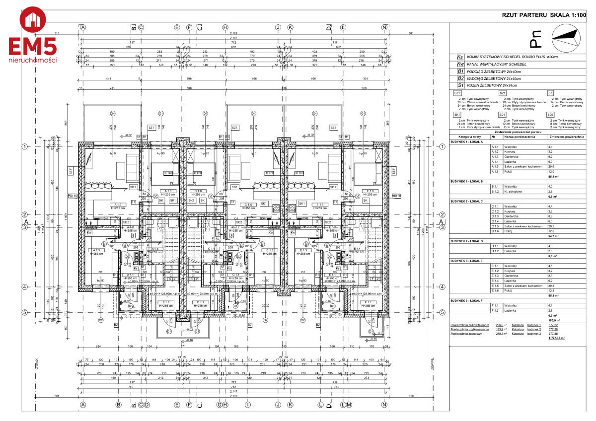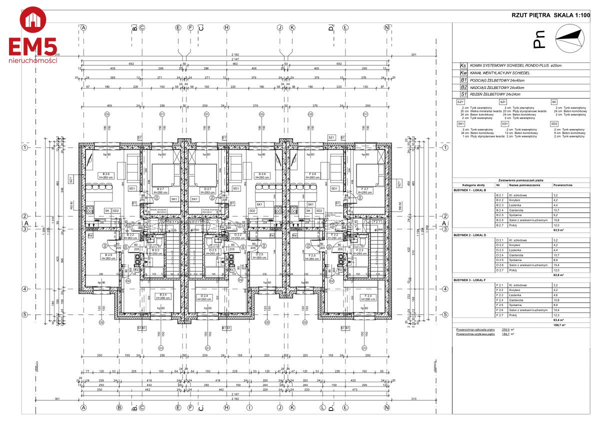 Mieszkania o powierzchni od 55 m2 do 64 m2 składają się z: