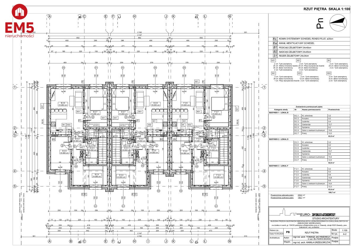 Wykonane i rozprowadzone instalacje: elektryczna, hydrauliczna, CO (z grzejnikami), gazowa,