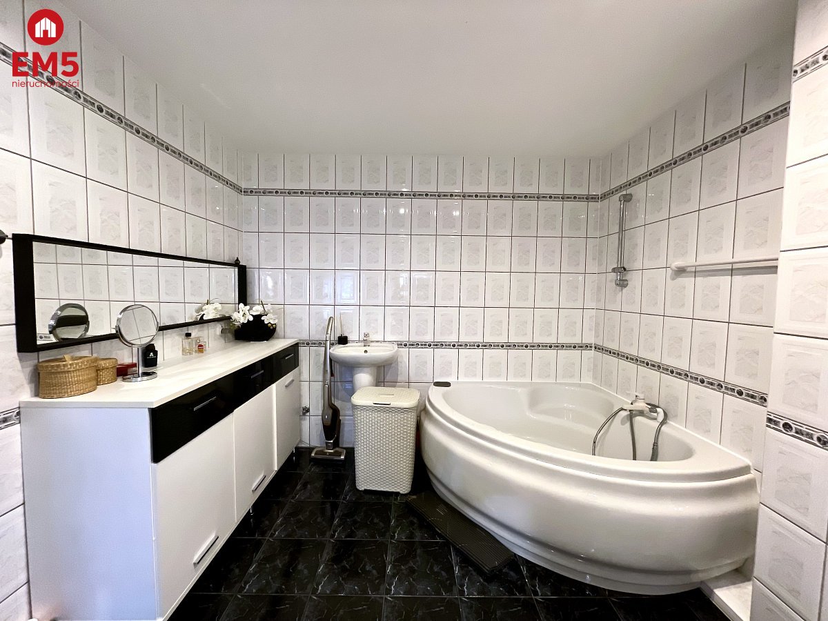 Dom posiada dużą, wygodną łazienkę oraz bardzo przestronną piwnicę, którą można z powodzeniem zagospodarować według własnych potrzeb. Może ona pełnić funkcję dodatkowej przestrzeni rekreacyjnej, biura, siłowni lub miejsca do przechowywania, co znacząco zwiększa funkcjonalność całego domu.