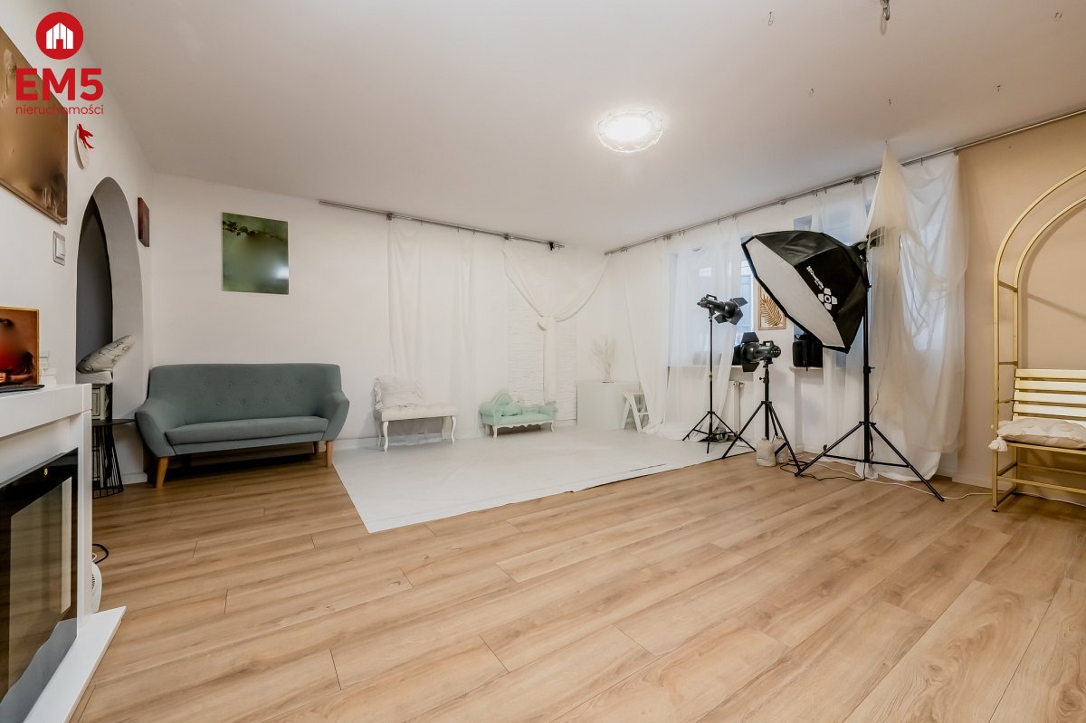 Na parterze znajduje się studio fotograficzne, które może być również przekształcone w inne pomieszczenie użytkowe według potrzeb. Piętro to przestronny salon z wyjściem na duży taras o powierzchni 40 m2 - idealne miejsce na relaks i spotkania z bliskimi. Znajdują się tu również funkcjonalna kuchnia, sypialnia oraz łazienka. Na pierwszym piętrze mieszczą się trzy duże sypialnie oraz kolejna łazienka, co zapewnia wygodę i prywatność wszystkim domownikom.